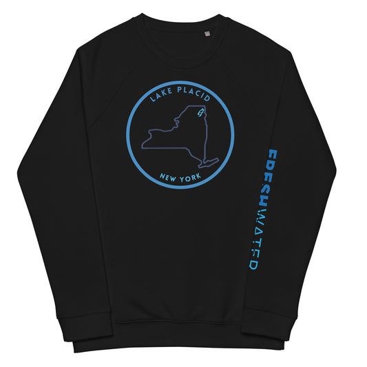 Lake Placid New York Freshwater NY Outline Unisex organic raglan sweatshirt