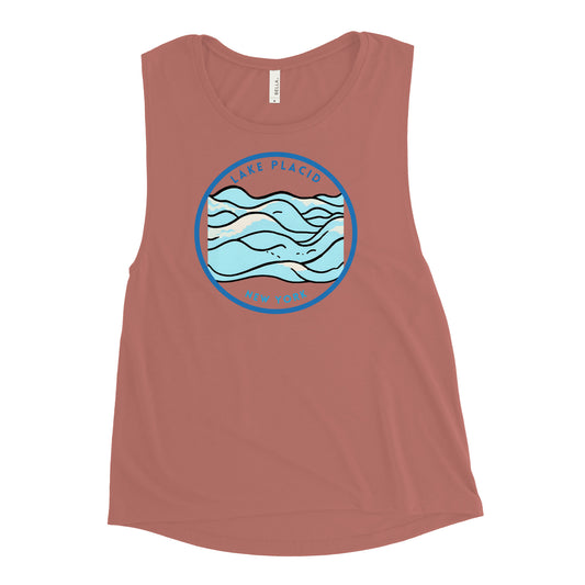 Lake Placid New York Freshwater Waves Ladies’ Muscle Tank