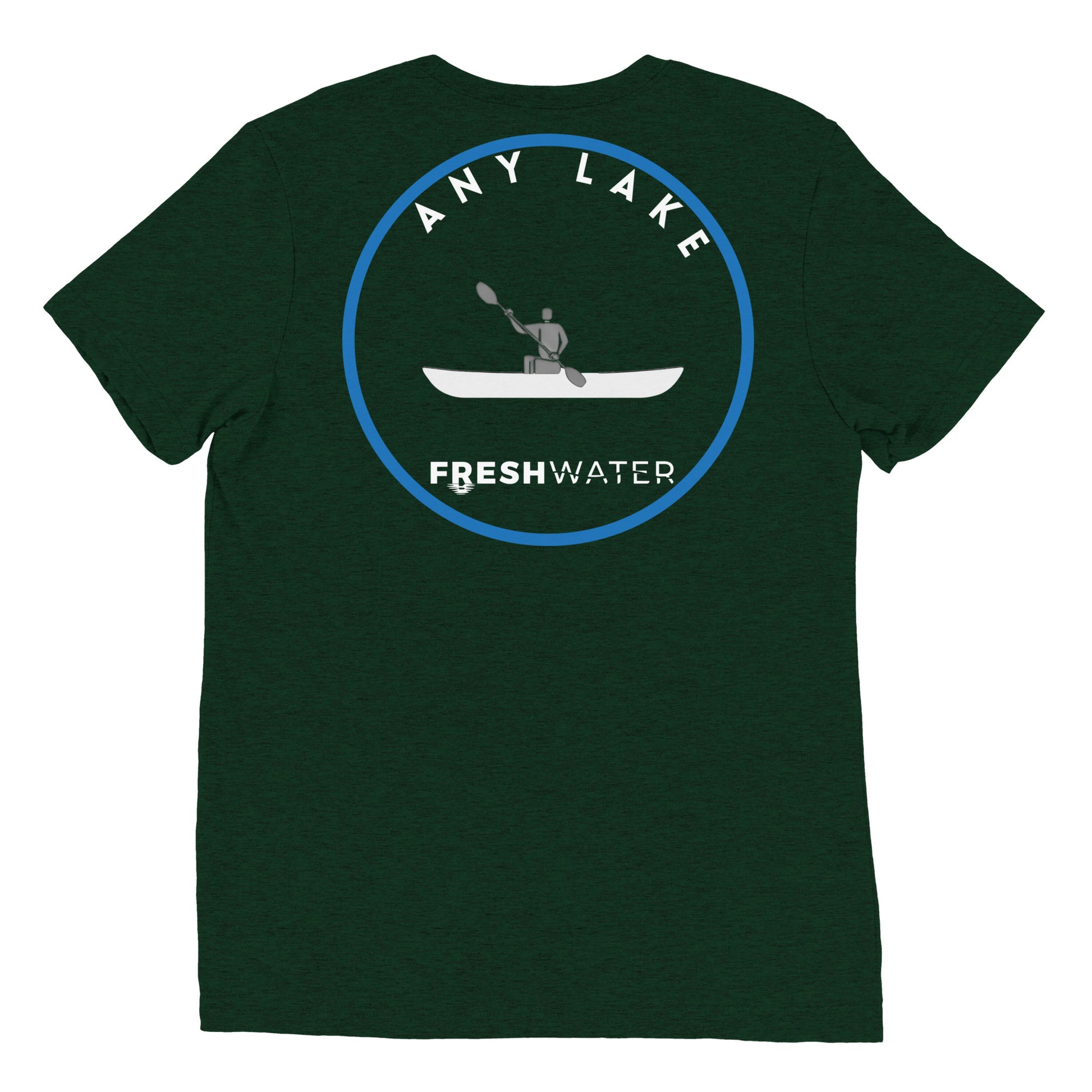 Customize your Freshwater shirt with the name of your favorite lake river, pond, creek, or any other body of water you kayak or canoe on.