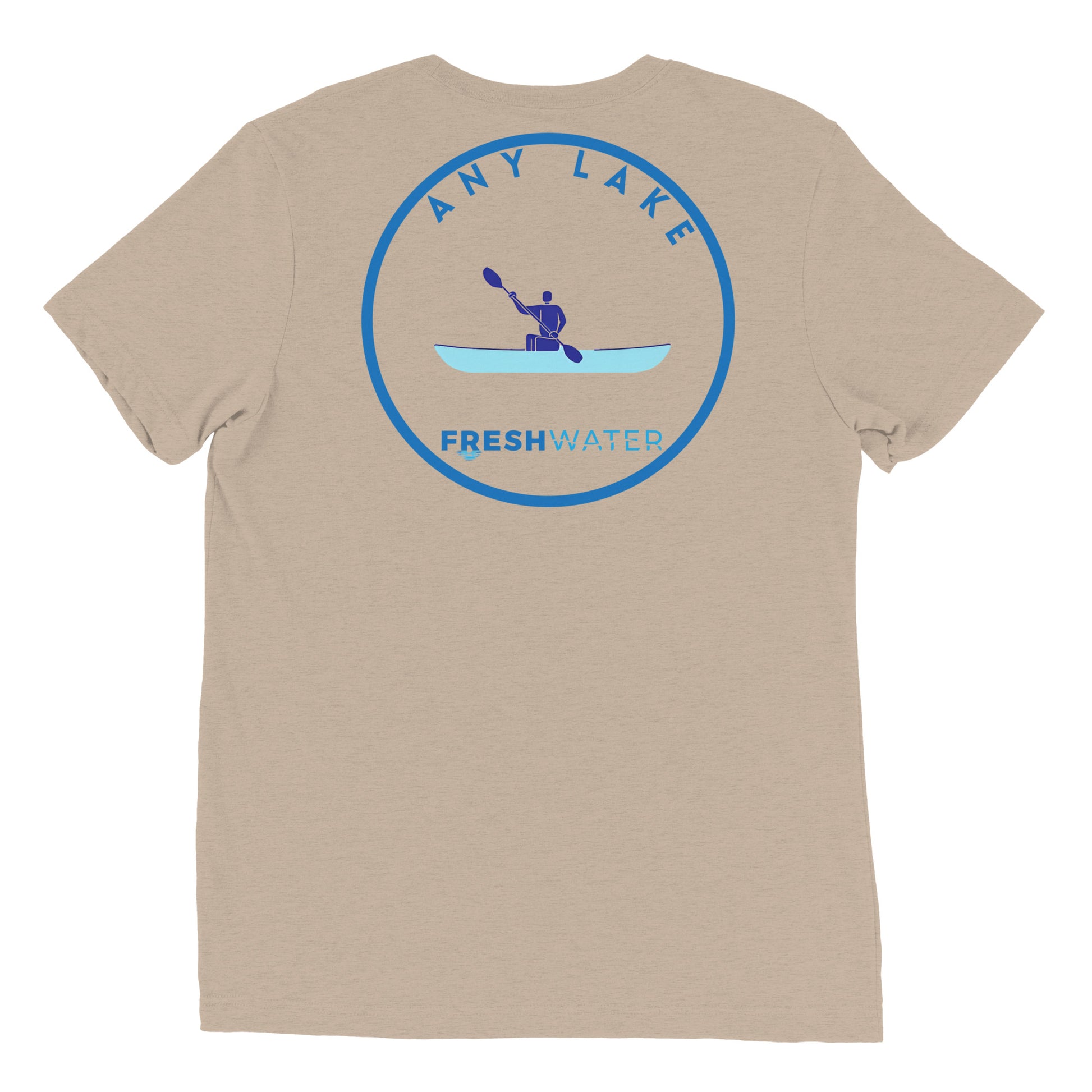 Customize your Freshwater shirt with the name of your favorite lake river, pond, creek, or any other body of water you kayak or canoe on.