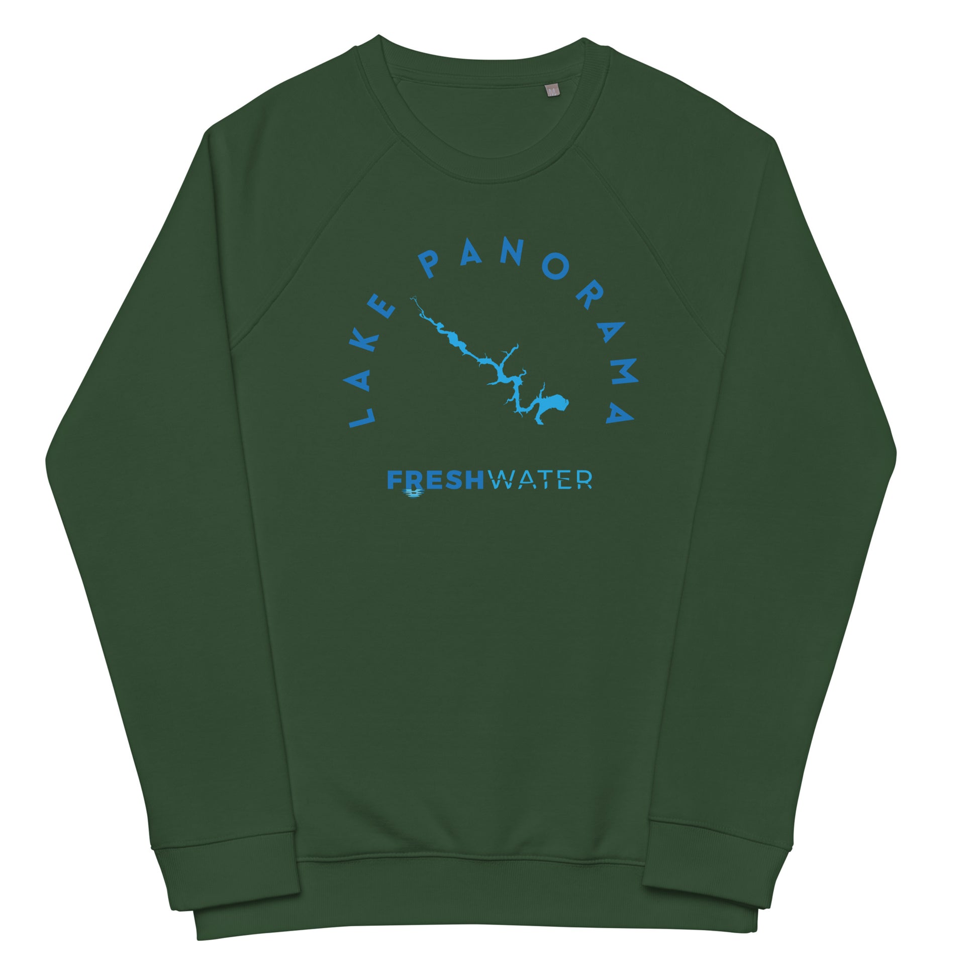 Lake Panorama Freshwater Blue Unisex organic raglan sweatshirt